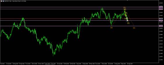 下記は、GBP/USDの日足チャートです。GBP/USD の日足では、右肩下がりのダブルトップでエリオット波動のC波に見えたので、売り目線で固定していました。