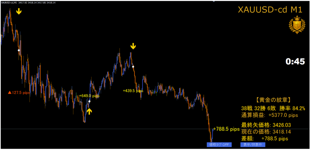 矢印サイン通り、タダそれだけ!【黄金の紋章】開発期間2年! ゴールド利益率は進撃の矢の30倍 ★シンプル取引で高収益期待★